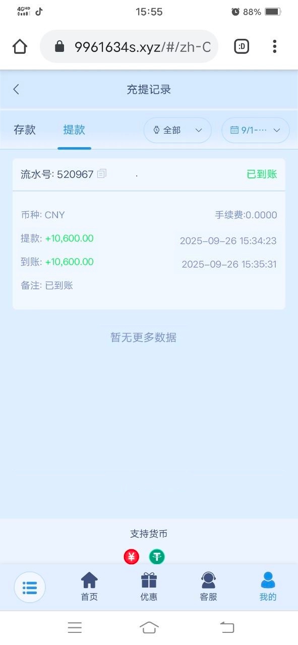 cc5577 你不觉得你这个发帖时间和提款时间有问题吗,现在晚上8点24,发帖时间3三小时前,你提款下午三点34,到账时间下午3点35,就两分钟时间到账了,你还会发帖出来问?那就说明你还没有发帖提到就早就到账了?