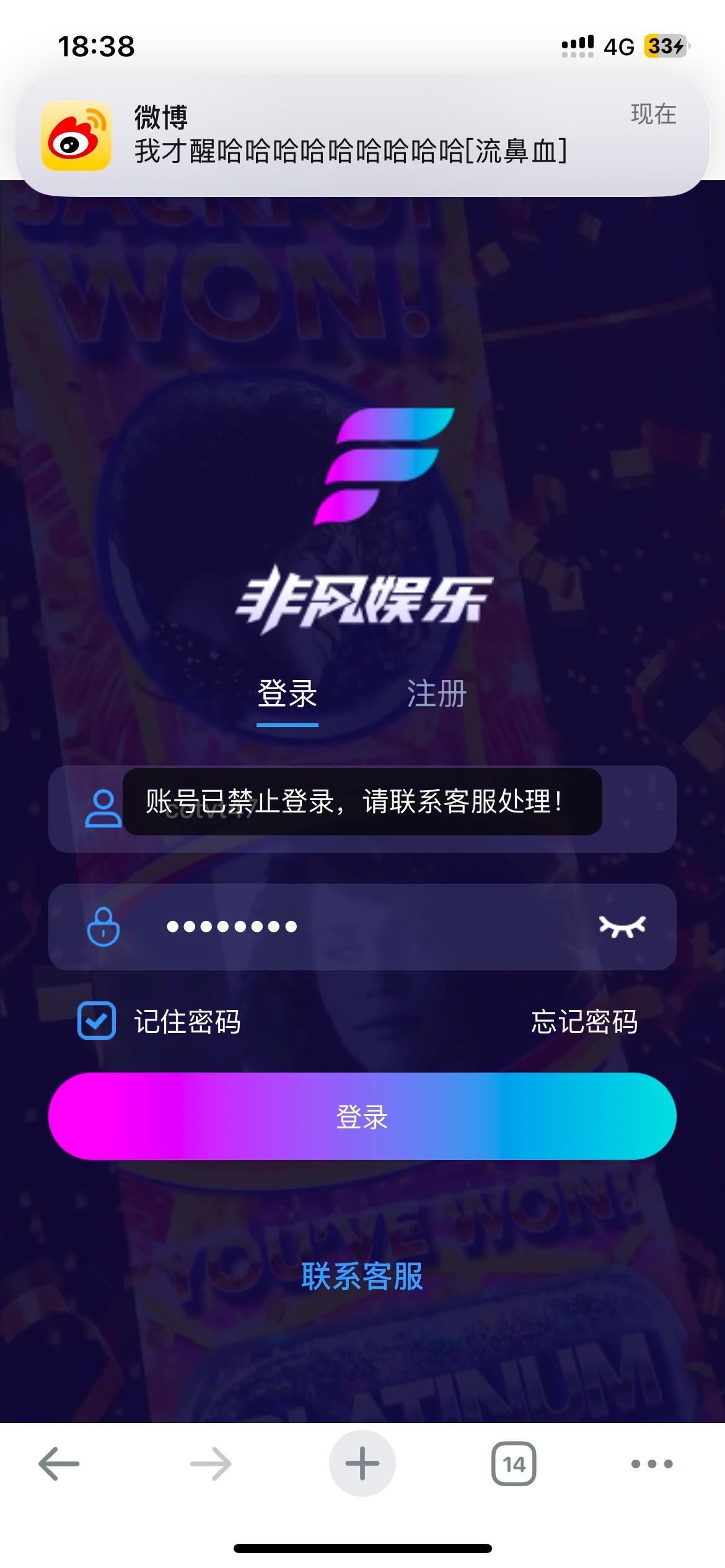 (这个上级不是本论坛的)    这个非凡娱乐的上级给下级赠送了28块钱彩金。打上了300。不给出款封号。旺旺直接拉黑。大家避着点儿。