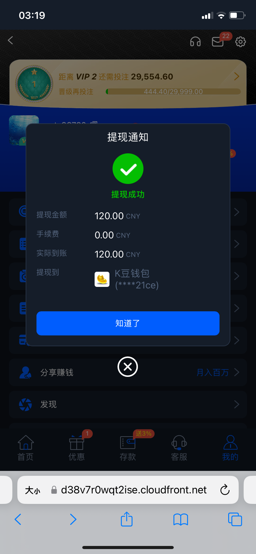 打了120  不知道能不能提现  等我消息