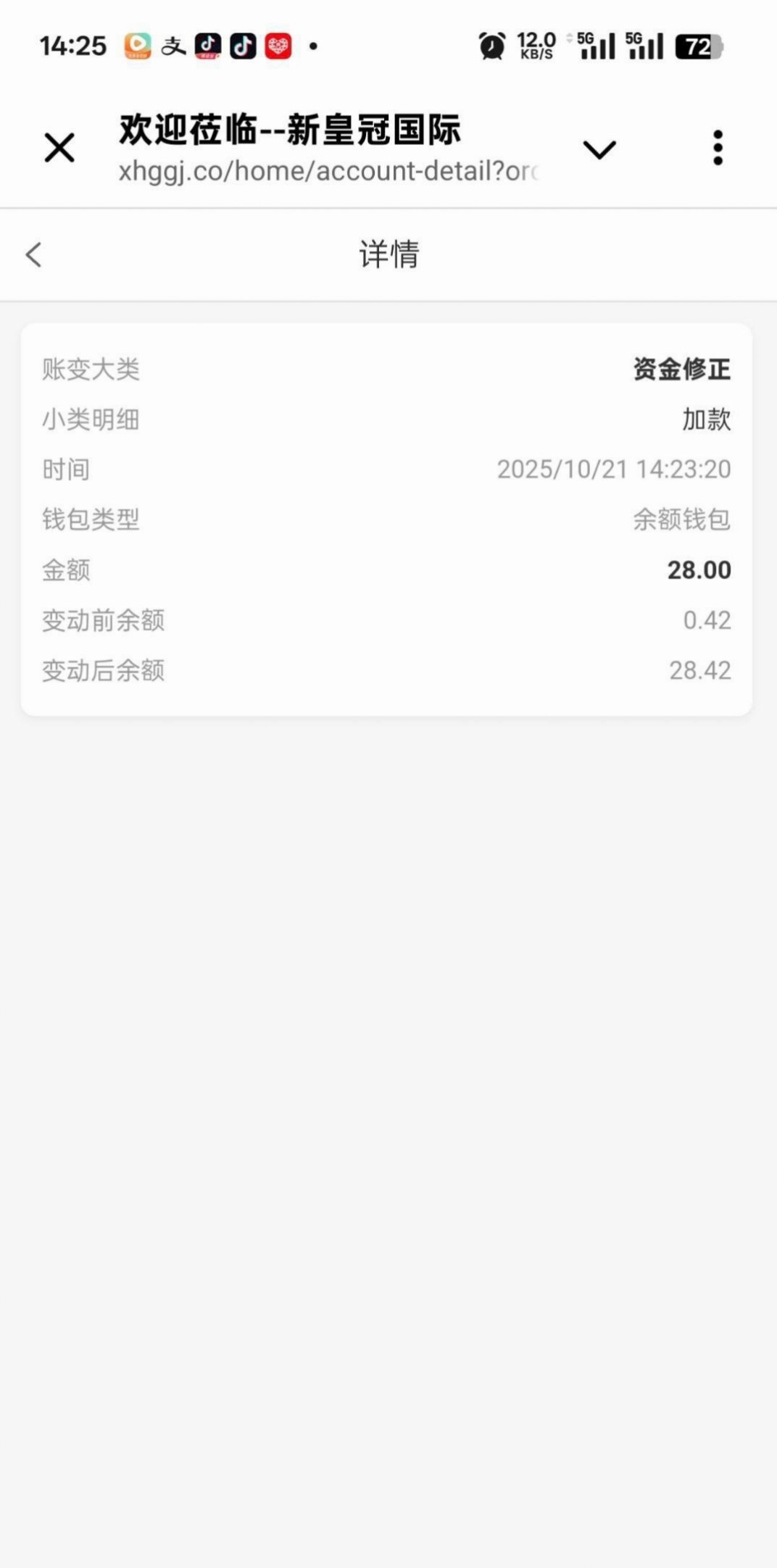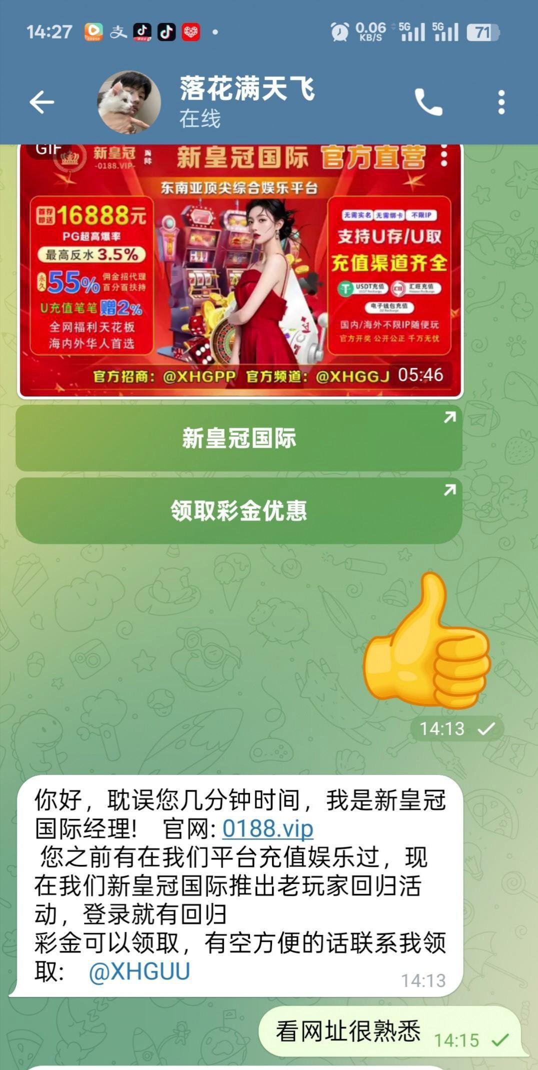 新皇冠0188.vip 在平台注册历史有过充值的老哥可联系飞机客服领取回归彩金,彩金随机,给我派送了28元彩金,飞机客服账号@XHGUU