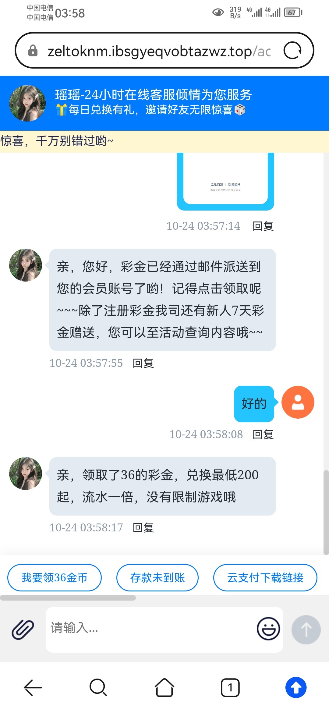 这个不是好久好久之前的白菜了嘛,送36两百提,好多个平台提出来二百,然后第二天打金花上头输了一千,太假了