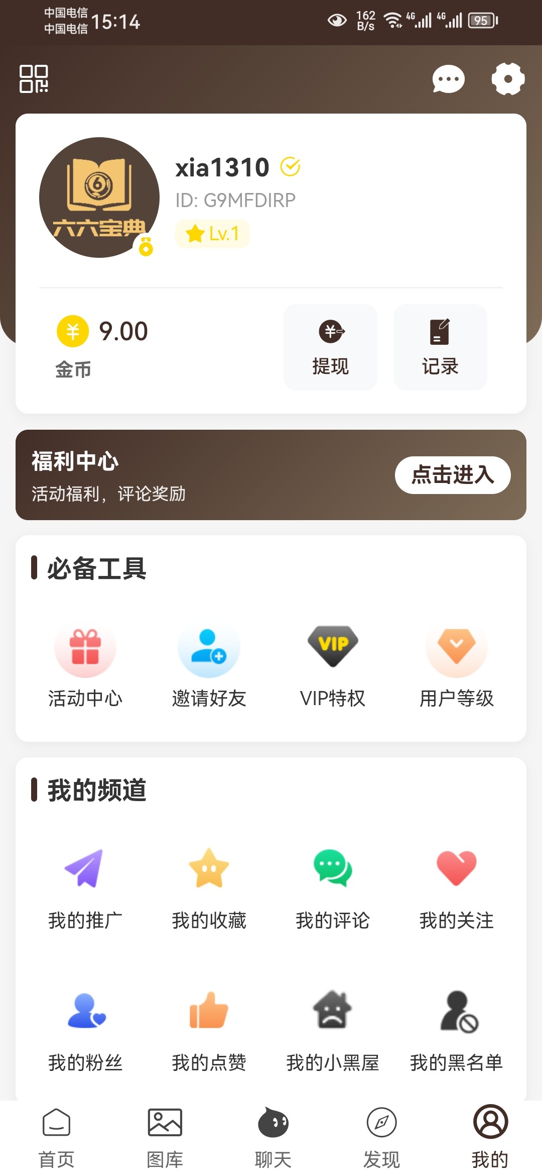 66BD.com新人注册就有 我没有打出来 打出来的老哥团一个 注册了点我的再点福利中心进去就能领取了